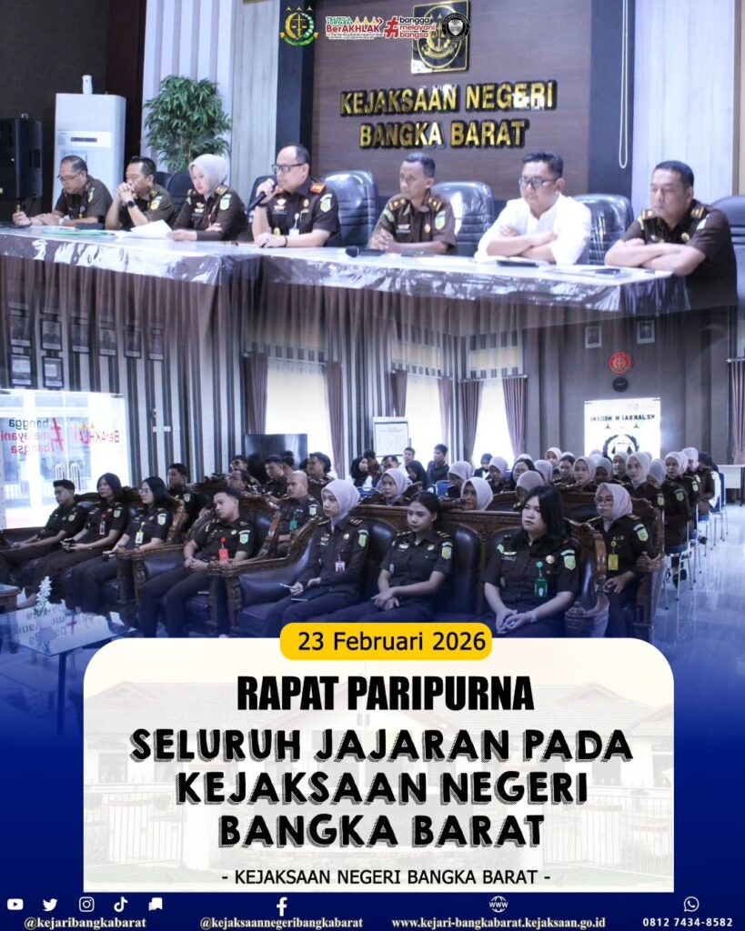 Senin, 23 Februari 2026, Kepala Kejaksaan Negeri Bangka Barat yang didampingi oleh Para Kepala Seksi dan Kasubbagbin, menggelar rapat paripurna...