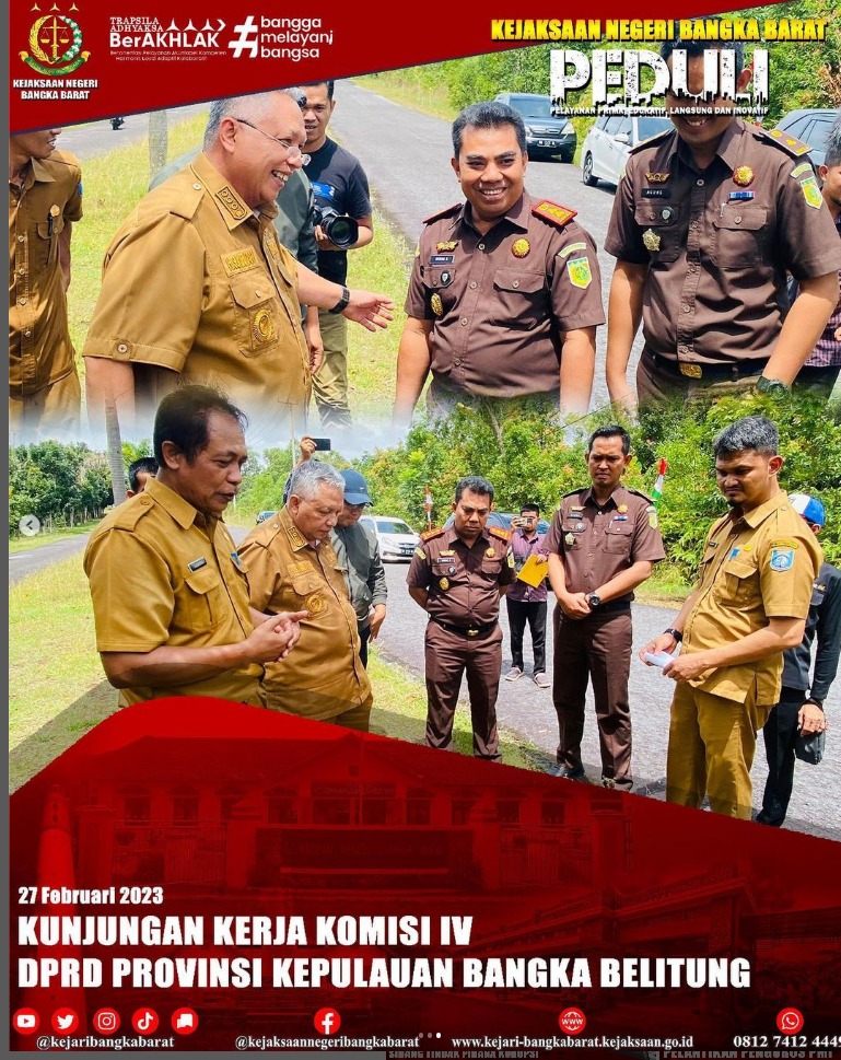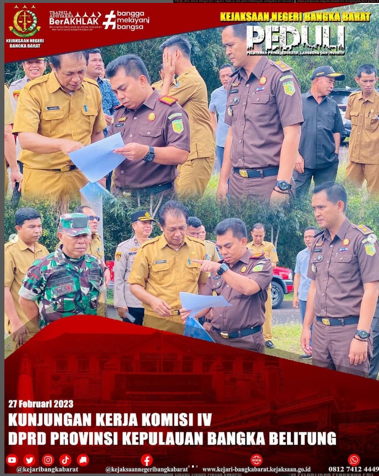 Senin, 27 Februari 2023 Kepala Kejaksaan Negeri Bangka Barat didampingi oleh Kasi PB3R dan Pegawai bersama unsur Forkopimda lainnya melakukan peninjauan lahan tanah hibah peruntukan pembangunan gedung Kantor Cabang Dinas wilayah IV bersama Komisi IV DPRD Provinsi Kepulauan Bangka Belitung