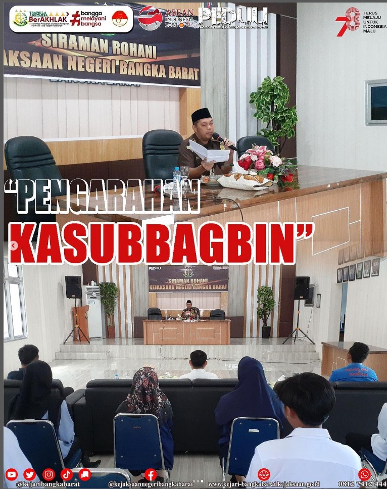 Selasa, 1 Agustus 2023, Kepala Sub Bagian Pembinaan Kejaksaan Negeri Bangka Barat memberikan pengarahan kepada seluruh PPNPN dan Honorer Kejari Bangka Barat dalam rangka peningkatan Kinerja, disiplin dan pelayanan kepada masyarakat