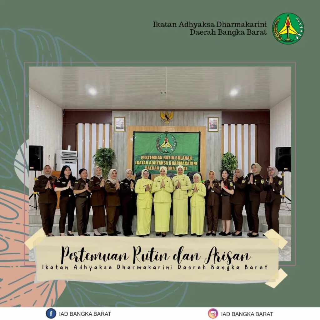 Berita IAD Pertemuan Rutin Arisan IAD Daerah Bangka Barat 0 Pada hari Selasa tanggal 16 April 2024 telah dilaksanakan Pertemuan Rutin dan Arisan Ikatan Adhyaksa Dharmakarini Daerah Bangka Barat di Aula Kejaksaan Negeri Bangka Barat Continue Reading Previous Pemusnahan Barang bukti Berupa Sabu-sabuNext Pemberian Tali Asih untuk Purnaja di Ikatan Adhyaksa Dharmakarini Daerah Bangka Barat Leave a Reply Cancel replyYour email address will not be published. Required fields are marked *Comment * Name * Email * Website Save my name, email, and website in this browser for the next time I comment.