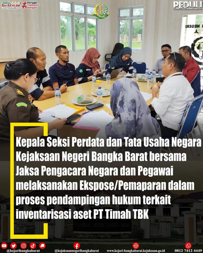 Rabu, 8 Mei 2024, Kepala Seksi Perdata dan Tata Usaha Negara Kejaksaan Negeri Bangka Barat bersama Jaksa Pengacara Negara dan Pegawai melaksanakan Ekspose/Pemaparan dalam proses pendampingan hukum terkait inventarisasi aset PT Timah TBK