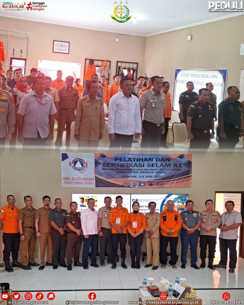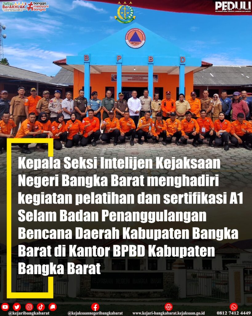 Senin, 3 Juni 2024, Kepala Seksi Intelijen Kejaksaan Negeri Bangka Barat menghadiri kegiatan pelatihan dan sertifikasi A1 Selam Badan Penanggulangan Bencana Daerah Kabupaten Bangka Barat di Kantor BPBD Kabupaten Bangka Barat