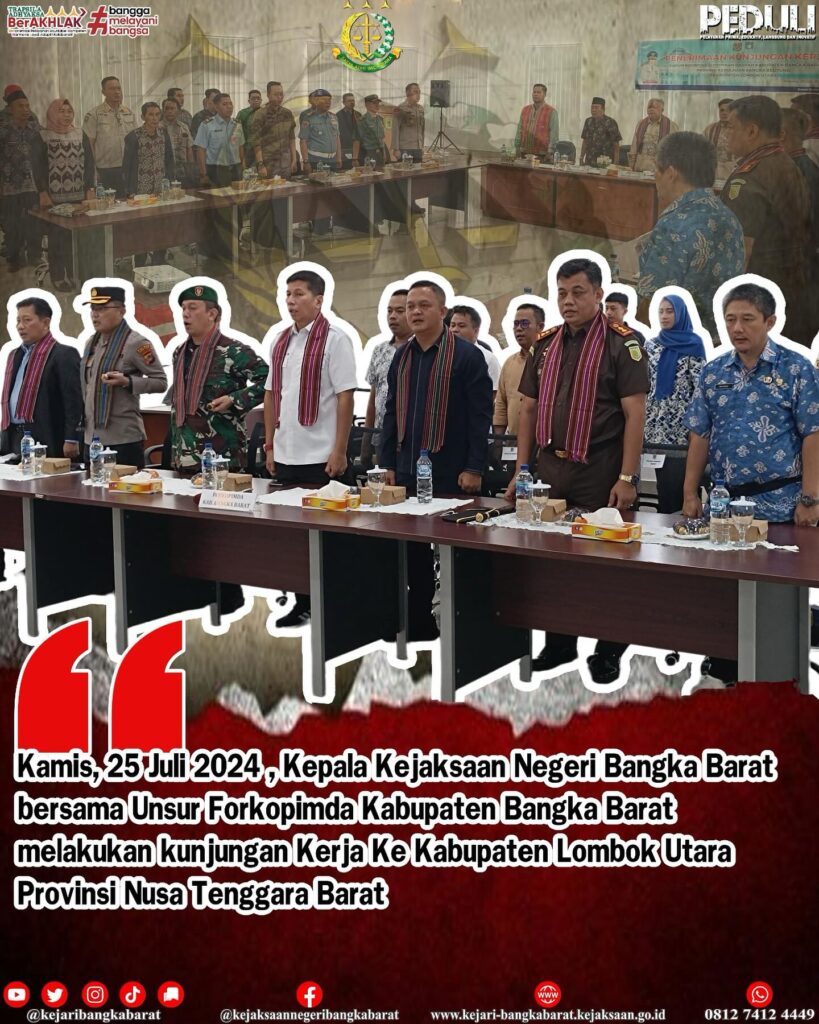 Kamis, 25 Juli 2024 , Kepala Kejaksaan Negeri Bangka Barat bersama Unsur Forkopimda Kabupaten Bangka Barat melakukan kunjungan Kerja Ke Kabupaten Lombok Utara Provinsi Nusa Tenggara Barat