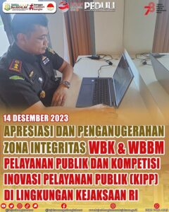 Kamis, 14 Desember 2023, Kepala Kejaksaan Negeri Bangka Barat, secara virtual mengikuti kegiatan Webinar Apresiasi dan Penganugerahan Zona Integritas Menuju...