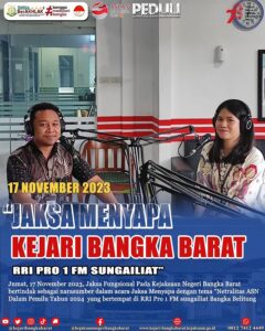 Jumat, 17 November 2023, Jaksa Fungsional Pada Kejaksaan Negeri Bangka Barat bertindak sebagai narasumber dalam acara Jaksa Menyapa dengan tema...