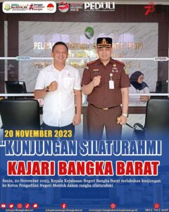 Senin, 20 November 2023, Kepala Kejaksaan Negeri Bangka Barat melakukan kunjungan ke Ketua Pengadilan Negeri Mentok dalam rangka silaturahmi