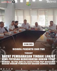Rabu, 23 Juli 2025 Kepala Seksi Perdata dan Tata Usaha Negara Kejaksaan Negeri Bangka Barat bersama Jaksa Pengacara Negara menghadiri...