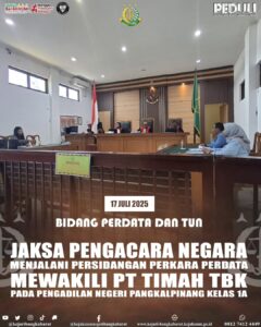 Kamis, 17 Juli 2025 atas surat kuasa khusus Jaksa Pengacara Negara pada Kejaksaan Negeri Bangka Barat mengikuti proses persidangan perkara...