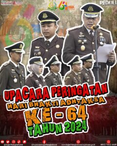 Senin, 22 Juli 2024 , Kejaksaan Negeri Bangka Barat melaksanakan upacara peringatan Hari Bhakti adhyaksa ke 64 tahun 2024 yang...